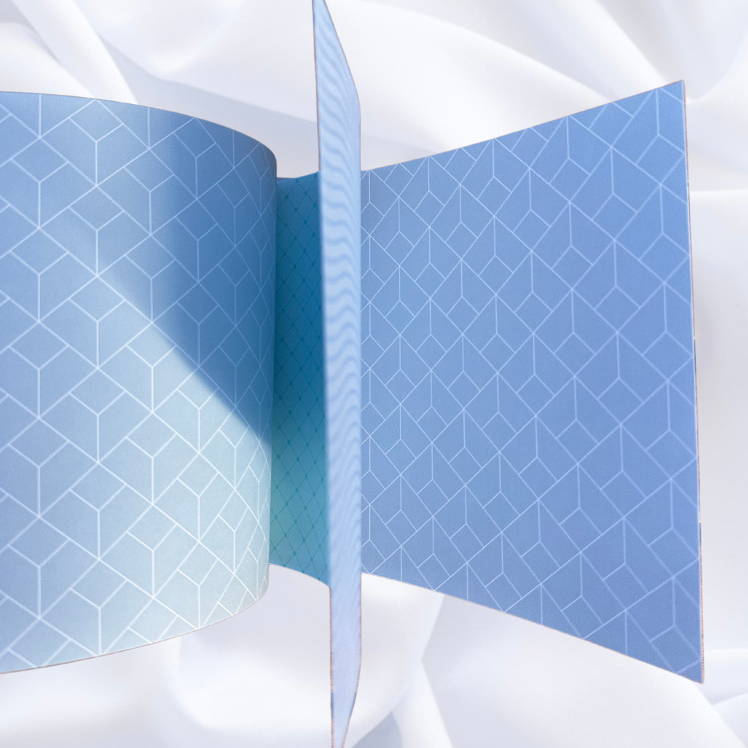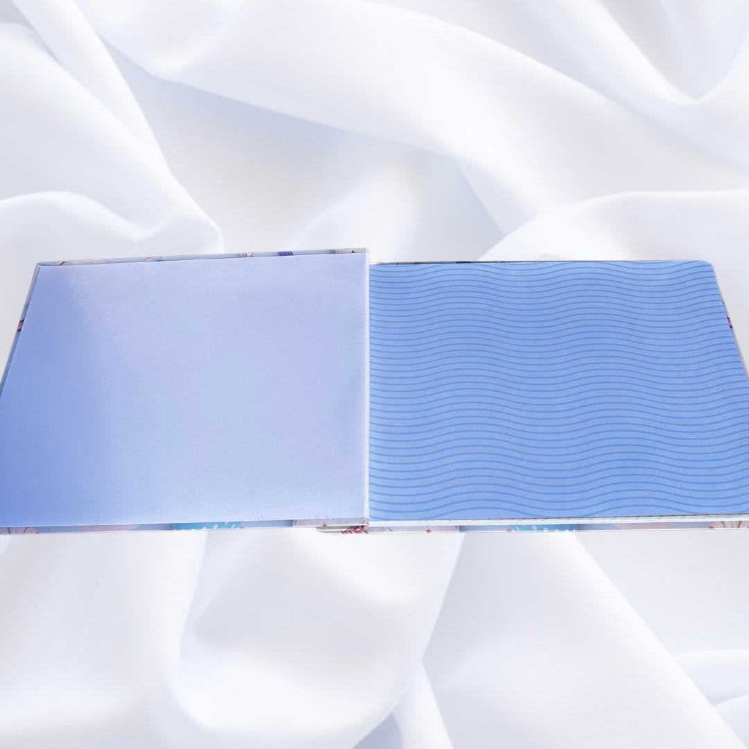 Material: pasta dura en acabado matte y detalle en dorado espejo en la portada y número (s) en 3D. Las hojas son de papel opalina con diseño.
