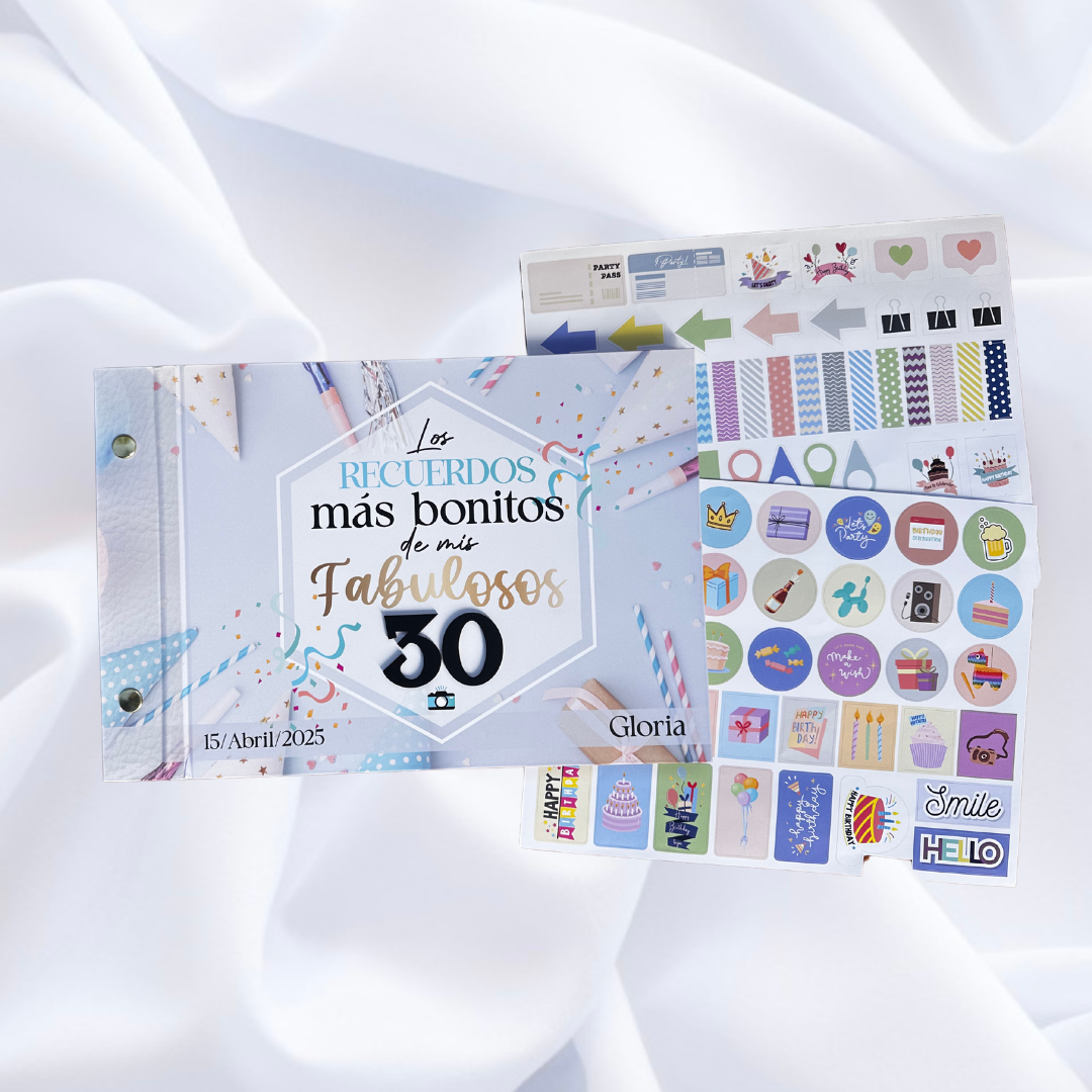 ¡Celebra la vida en grande con nuestro álbum fotográfico "Feliz cumpleaños"! Ideal para guardar los mejores recuerdos de ese nuevo año de vida o de celebraciones pasadas. También es perfecto para regalar a alguien especial o para darte un auto regalo en tu cumpleaños. ¡Personalízalo con plantillas de stickers y esquineros!