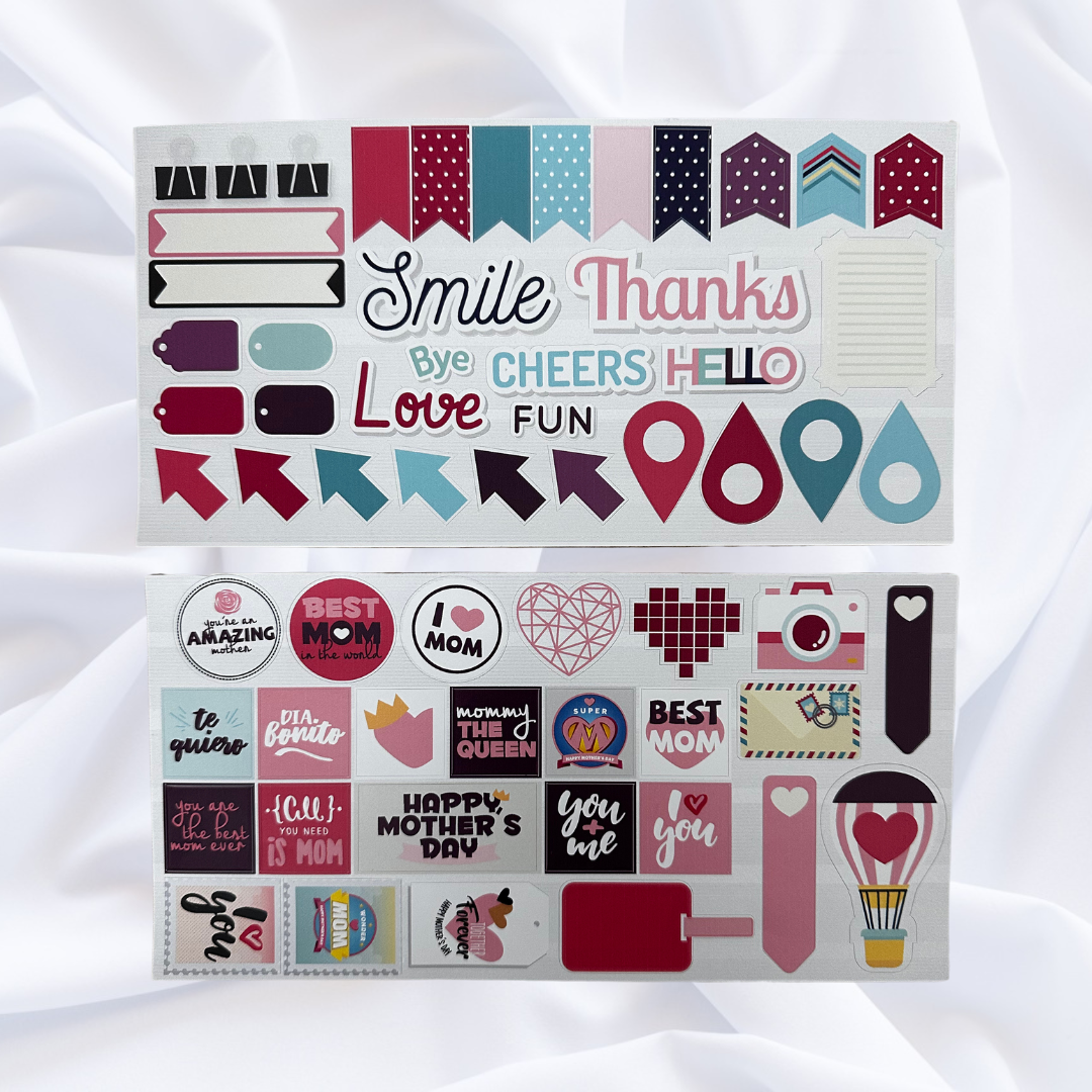 Incluye: 15 hojas (30 páginas) de papel opalina con diseño. 2 plantillas de stickers y 4 mini plantillas de esquineros para decorar.