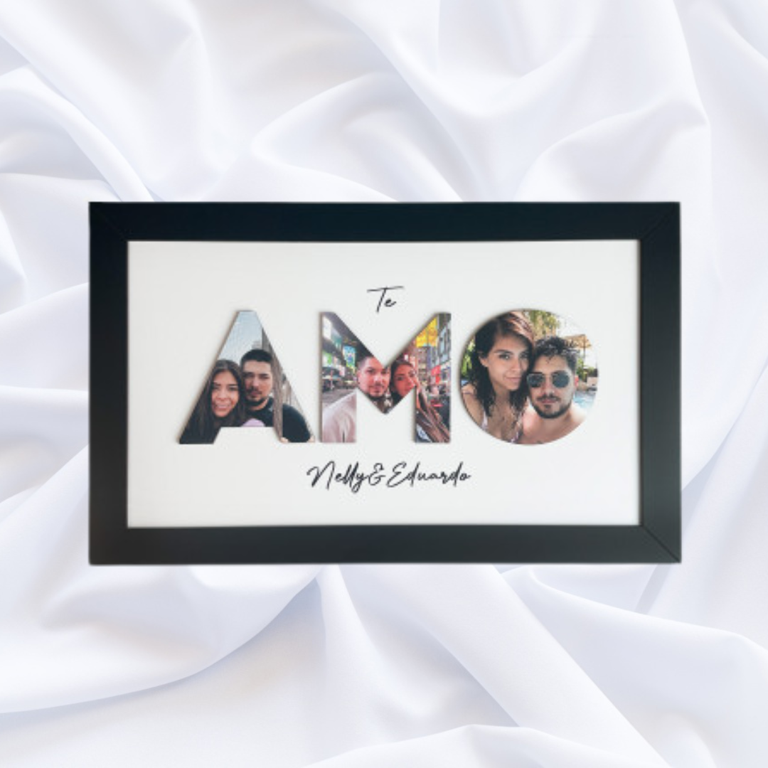 Da vida a su espacio con este elegante y exclusivo cuadro 3D de la palabra AMO. Cada letra personalizada con una fotografía, añade un toque único y funcional a la decoración. El regalo perfecto para expresar su amor de una manera bella y sofisticada. ¡Listo para colgar en su pared favorita!