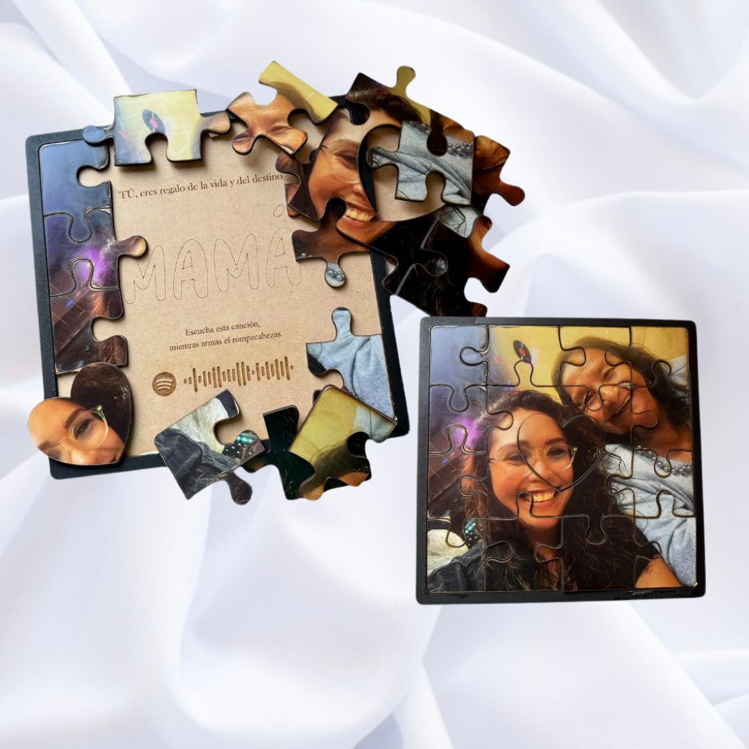 Incluye: Tu foto en rompecabezas. Frase personalizada en base y código de Spotify
